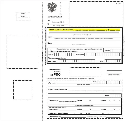 Бланк почты России ф.113эн (перевод за посылку с наложенным платежом).