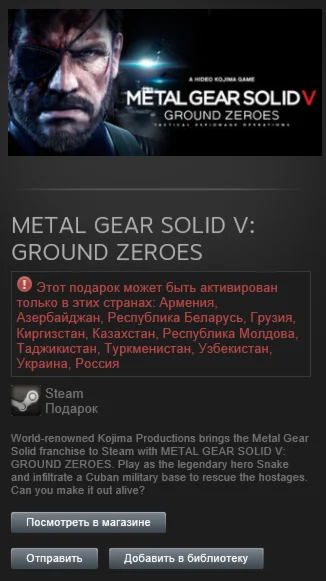ВНИМАНИЕ! Этот подарок может быть активирован только в этих странах: Россия, Армения, Азербайджан, Республика Беларусь, Грузия, Киргизстан, Казахстан, Молдова, Республика Молдова, Таджикистан, Туркменистан, Узбекистан, Украина.