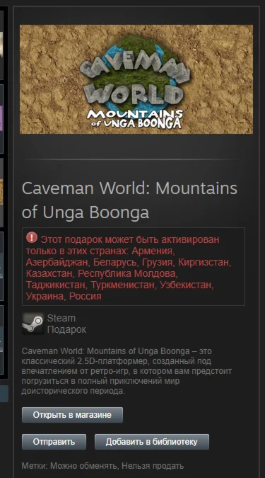 ВНИМАНИЕ! Этот подарок может быть активирован только в этих странах: Россия, Армения, Азербайджан, Республика Беларусь, Грузия, Киргизстан, Казахстан, Молдова, Республика Молдова, Таджикистан, Туркменистан, Узбекистан, Украина.