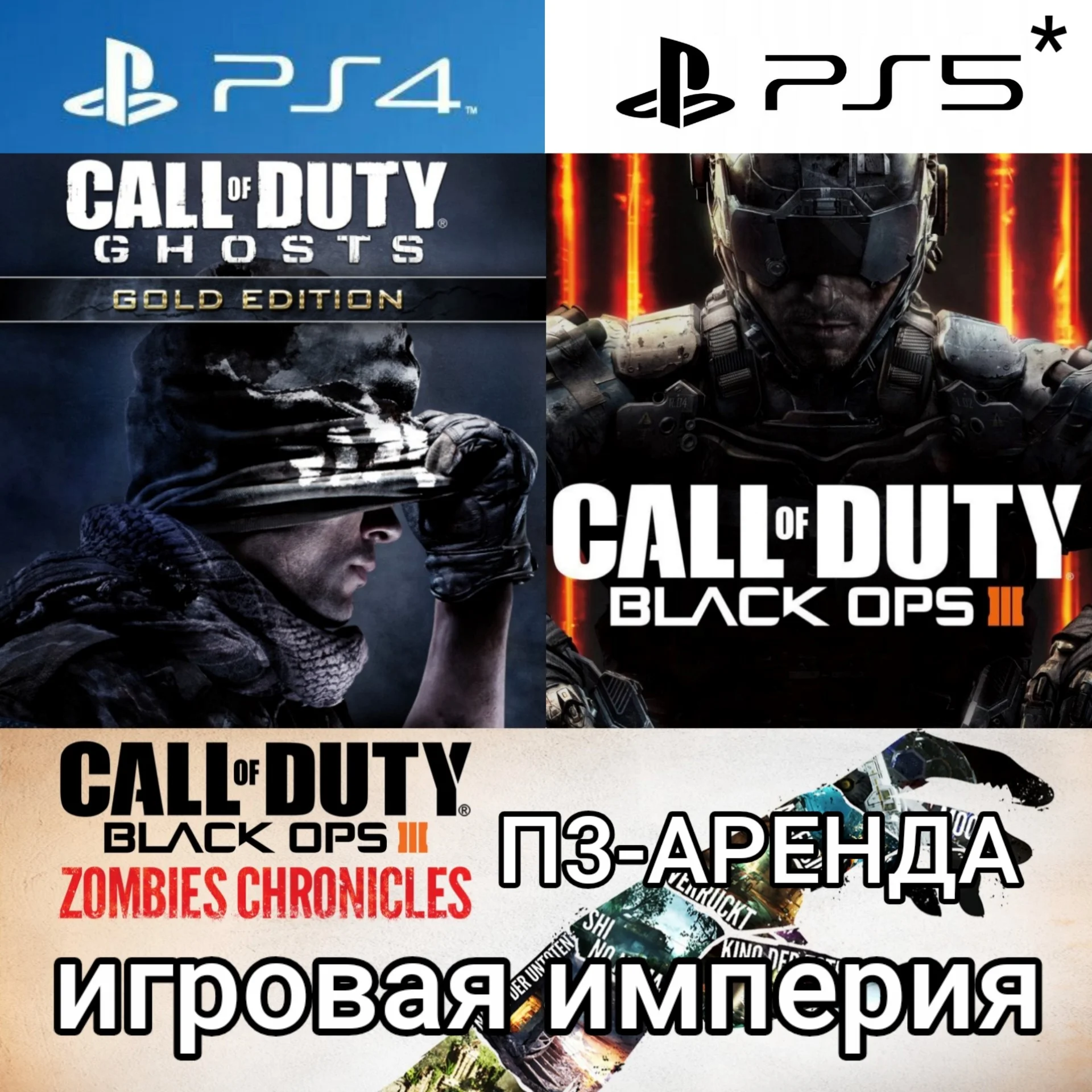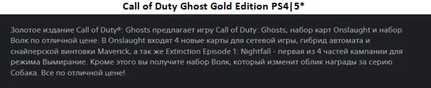 2.Доступные платформа: PS4|5* - Call of Duty Ghosts + PS4|5* - Call of Duty Black OPS 3.