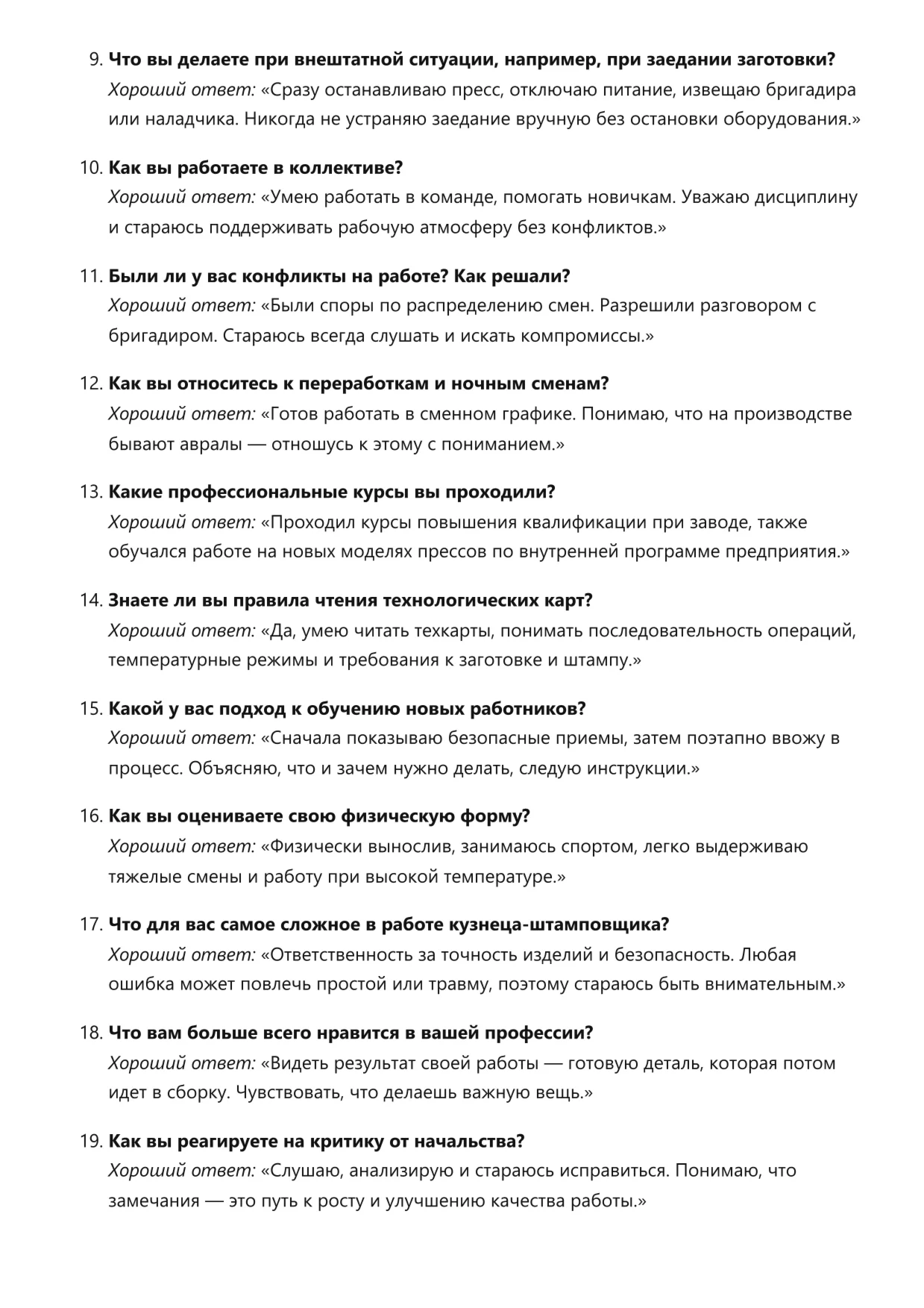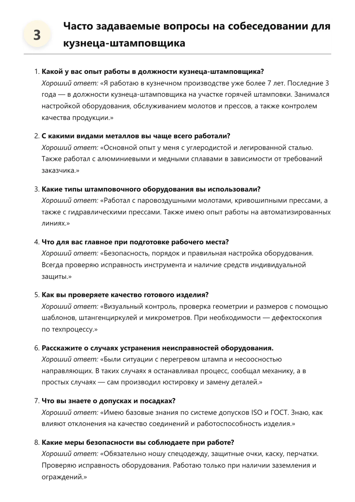Кузнец-штамповщик. Подготовка к собеседованию. Как пройти собеседование на позицию специалиста. Вопросы и ответы на собеседовании.