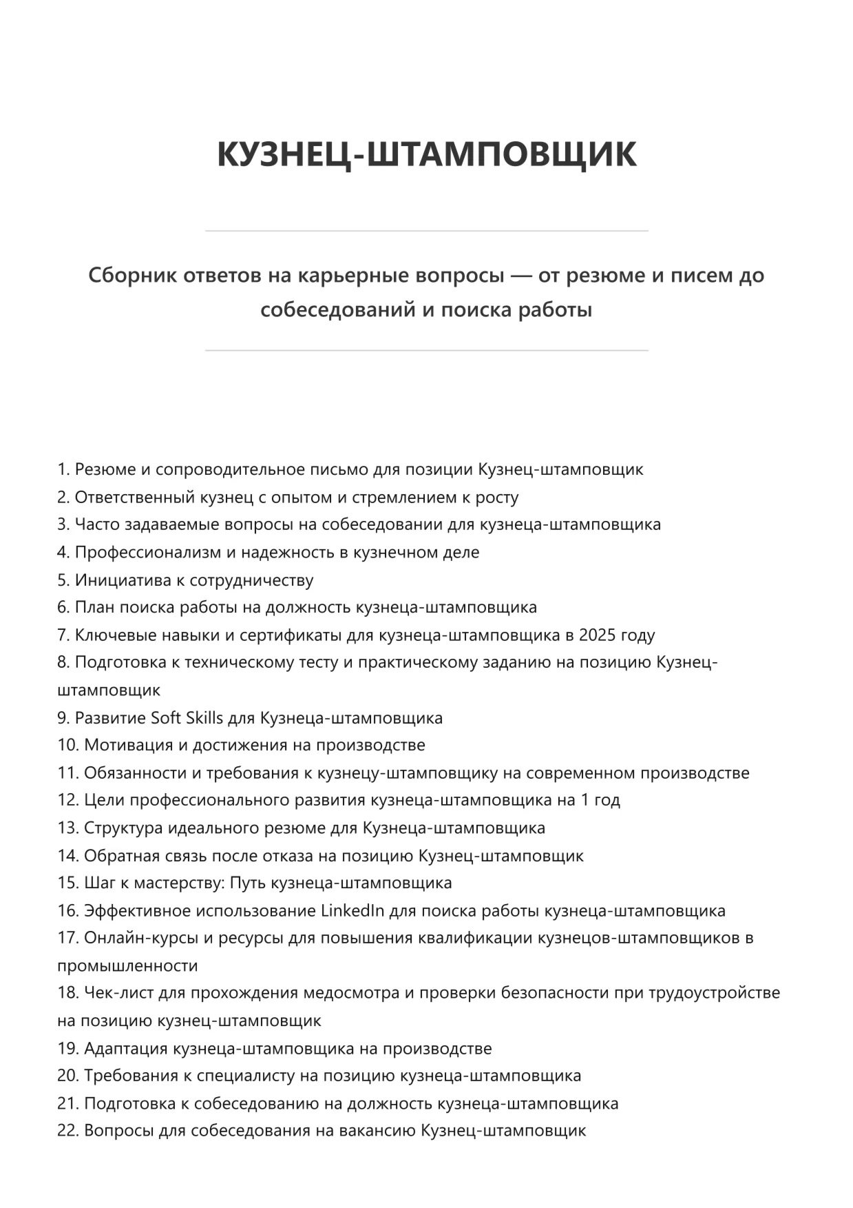 Эта электронная книга представляет собой сборник вопросов и ответов, которые часто возникают у соискателей на разных этапах поиска работы. В ней собран практический опыт и советы, которые помогут быстрее разобраться в нюансах трудоустройства и уверенно действовать в любых ситуациях.