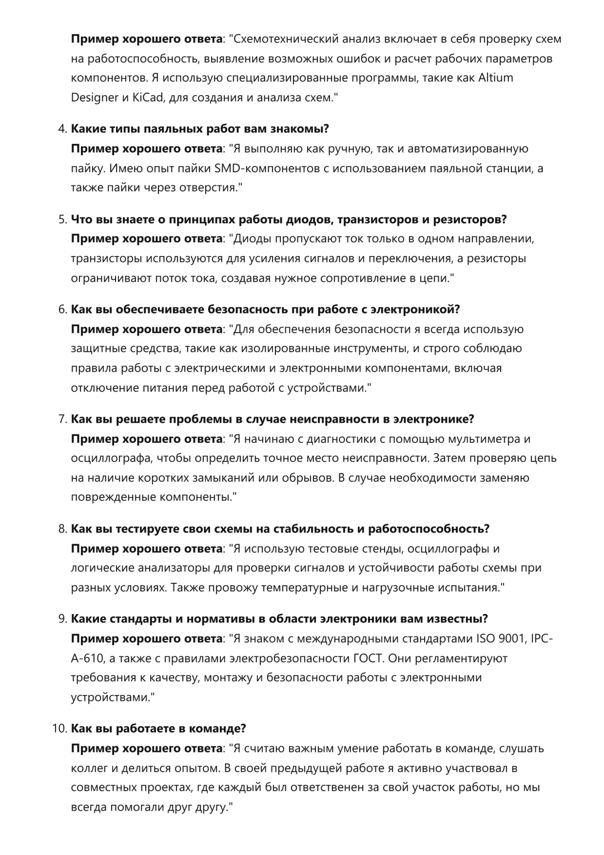 Инженер-электронщик. Подготовка к собеседованию. Как пройти собеседование на позицию специалиста. Вопросы и ответы на собеседовании.