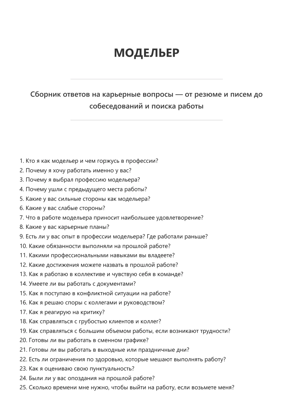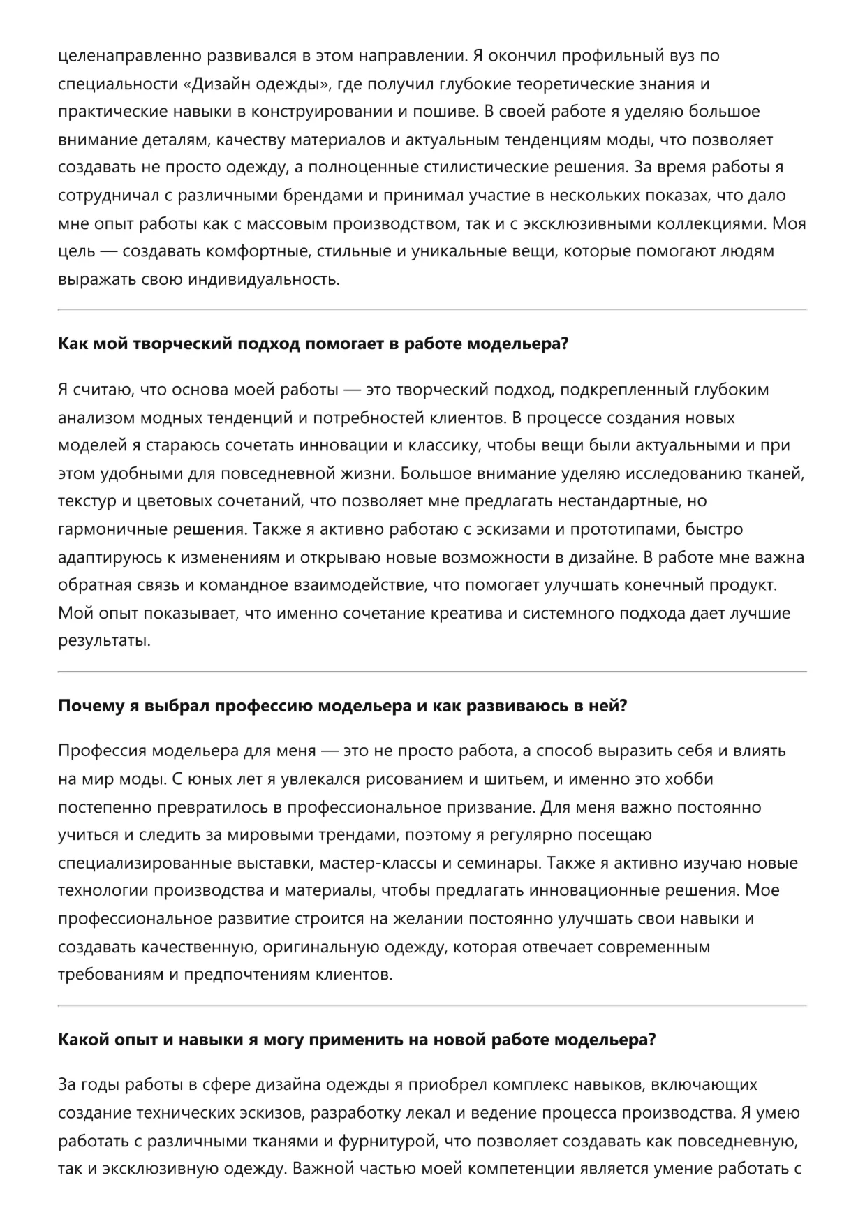 Модельер. Подготовка к собеседованию. Как пройти собеседование на позицию специалиста. Вопросы и ответы на собеседовании.