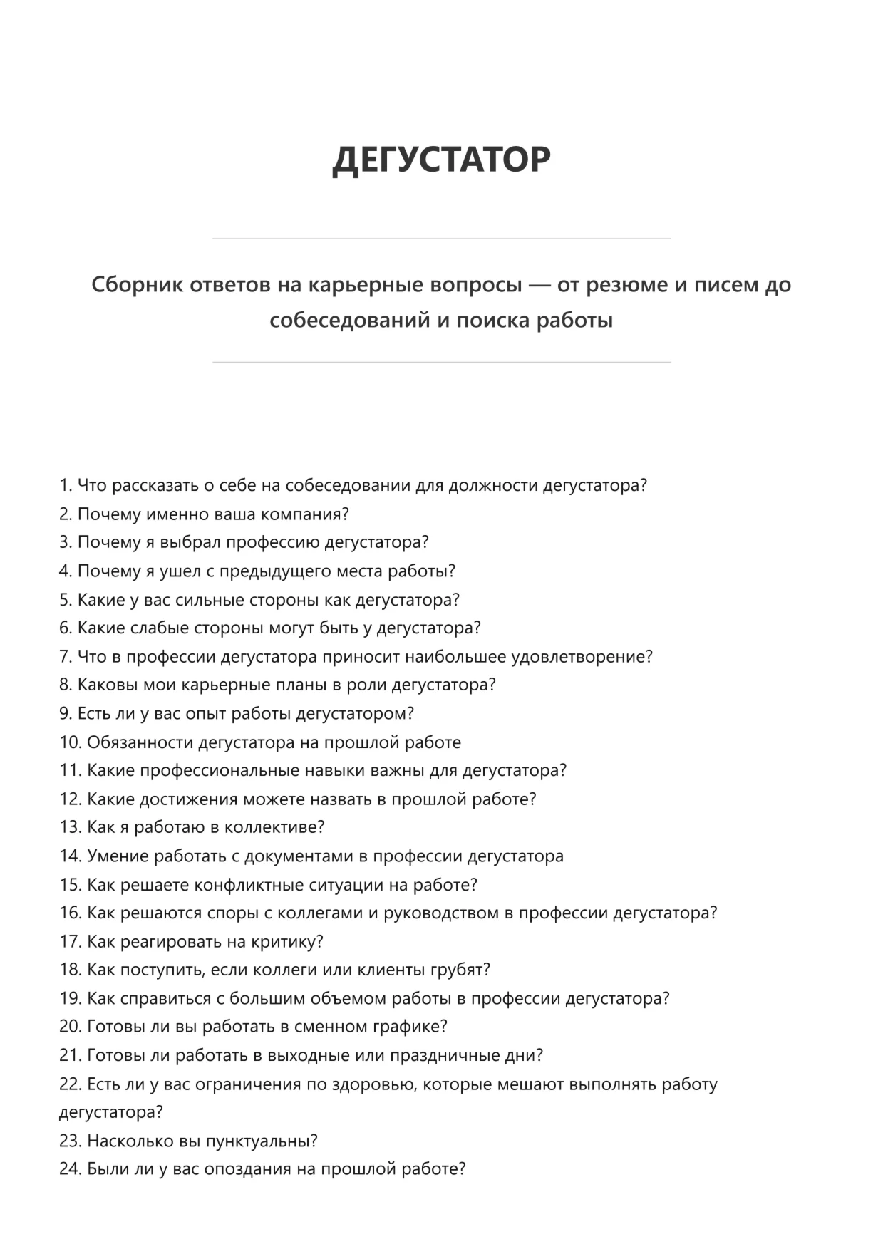 Дегустатор. Подготовка к собеседованию. Как пройти собеседование на позицию специалиста. Вопросы и ответы на собеседовании.