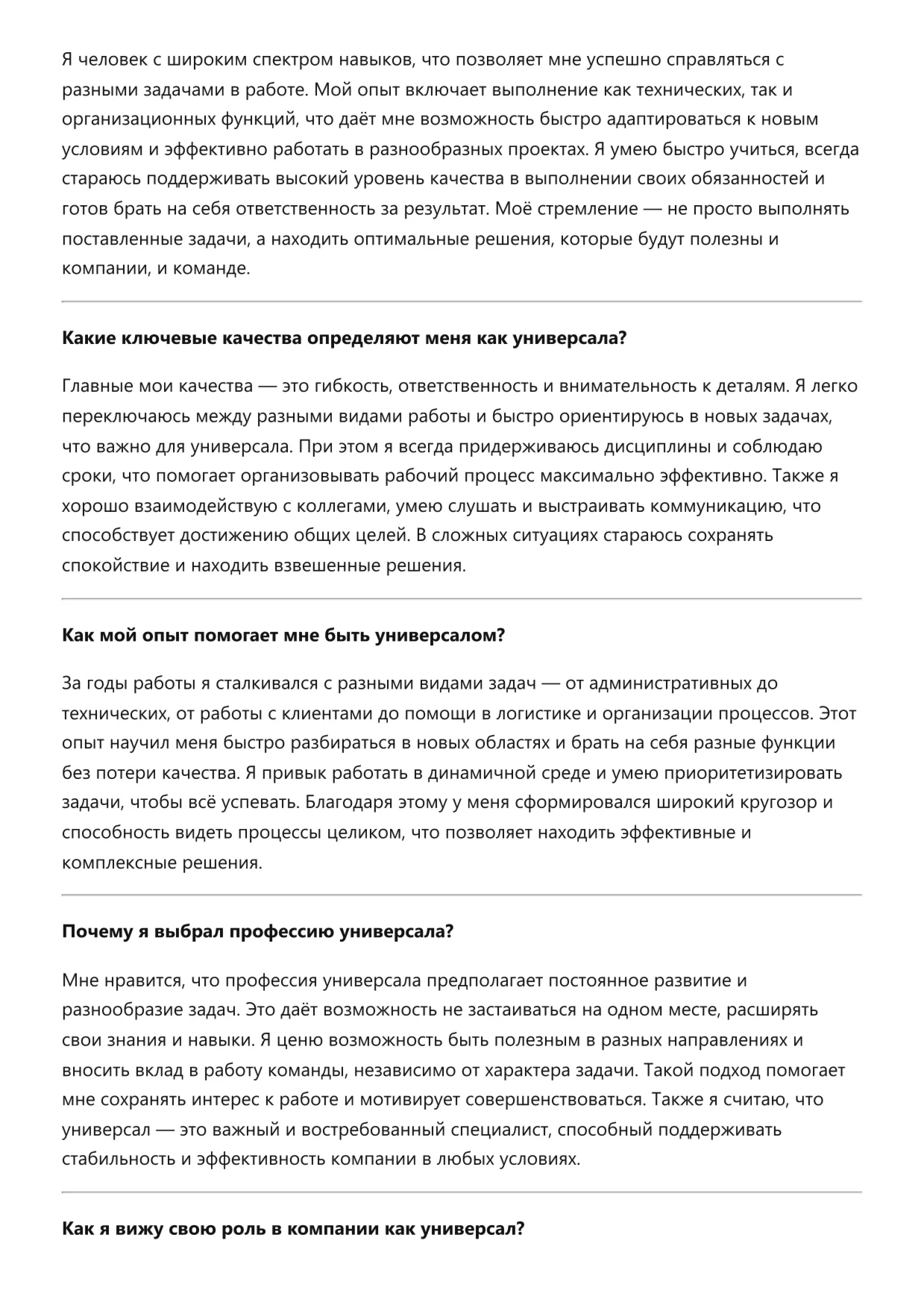 Универсал. Подготовка к собеседованию. Как пройти собеседование на позицию специалиста. Вопросы и ответы на собеседовании.