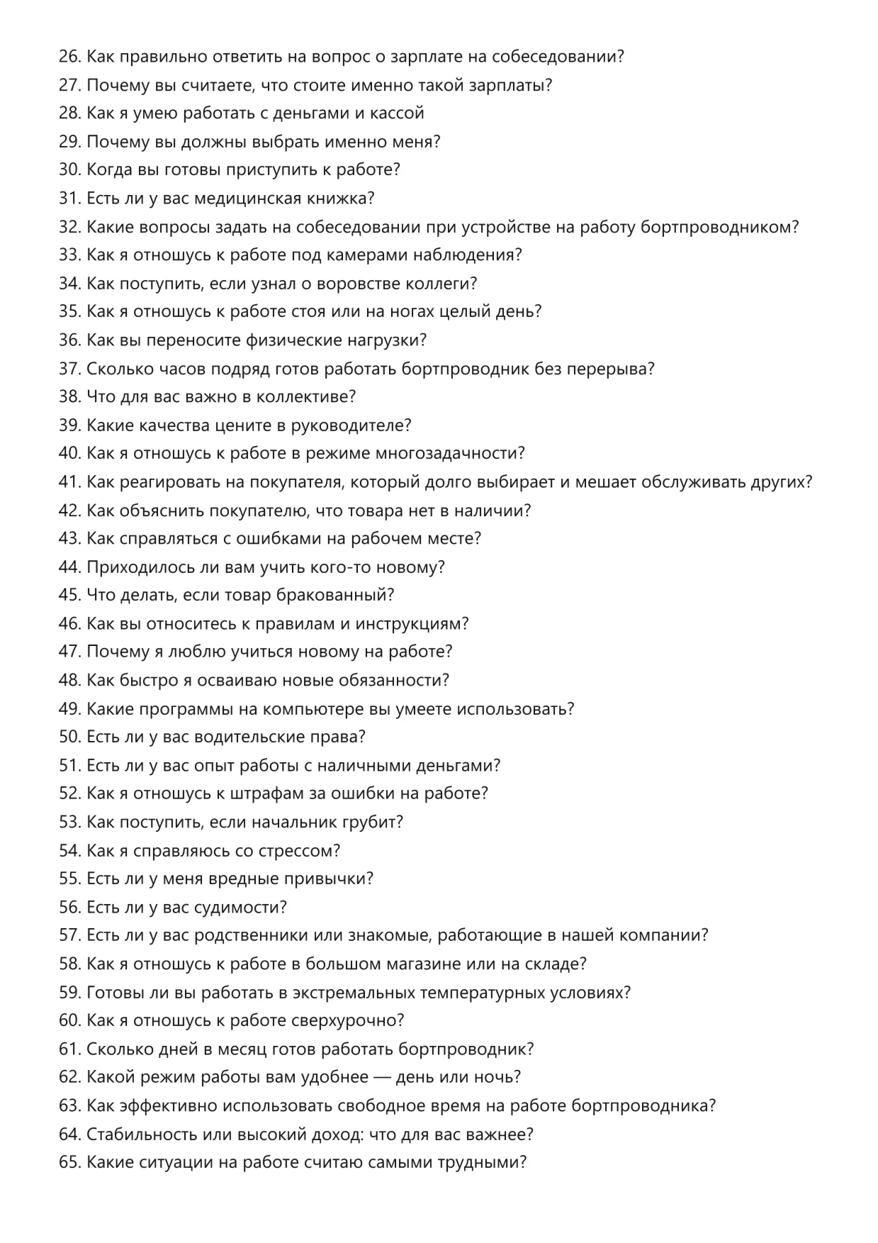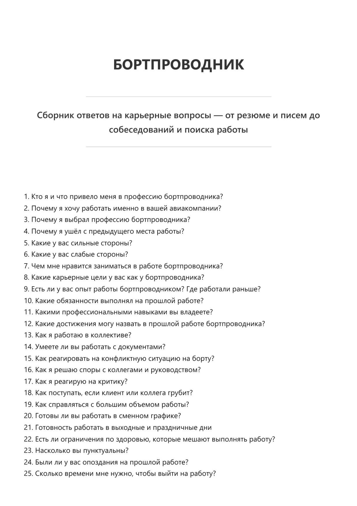 Бортпроводник. Подготовка к собеседованию. Как пройти собеседование на позицию специалиста. Вопросы и ответы на собеседовании.
