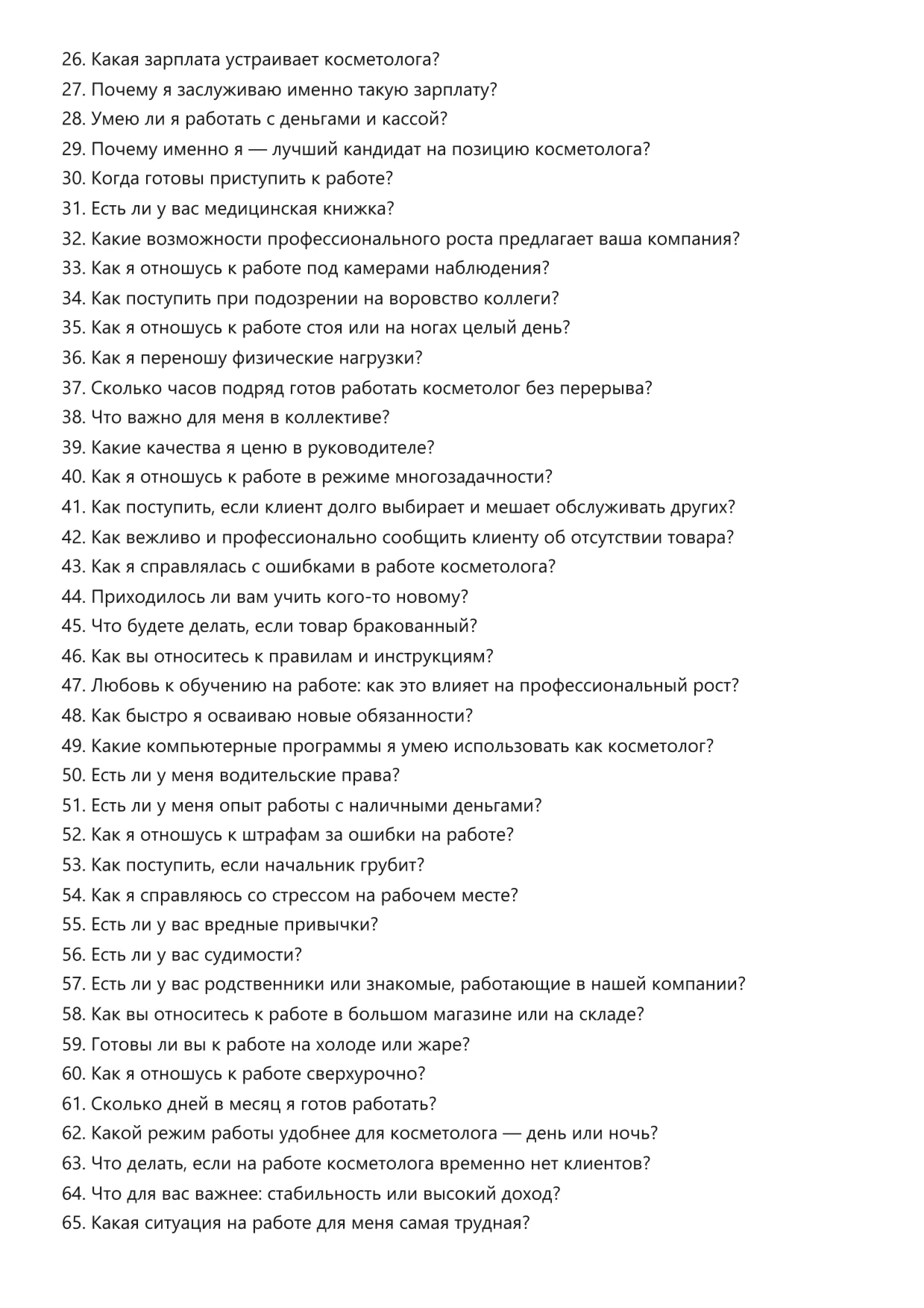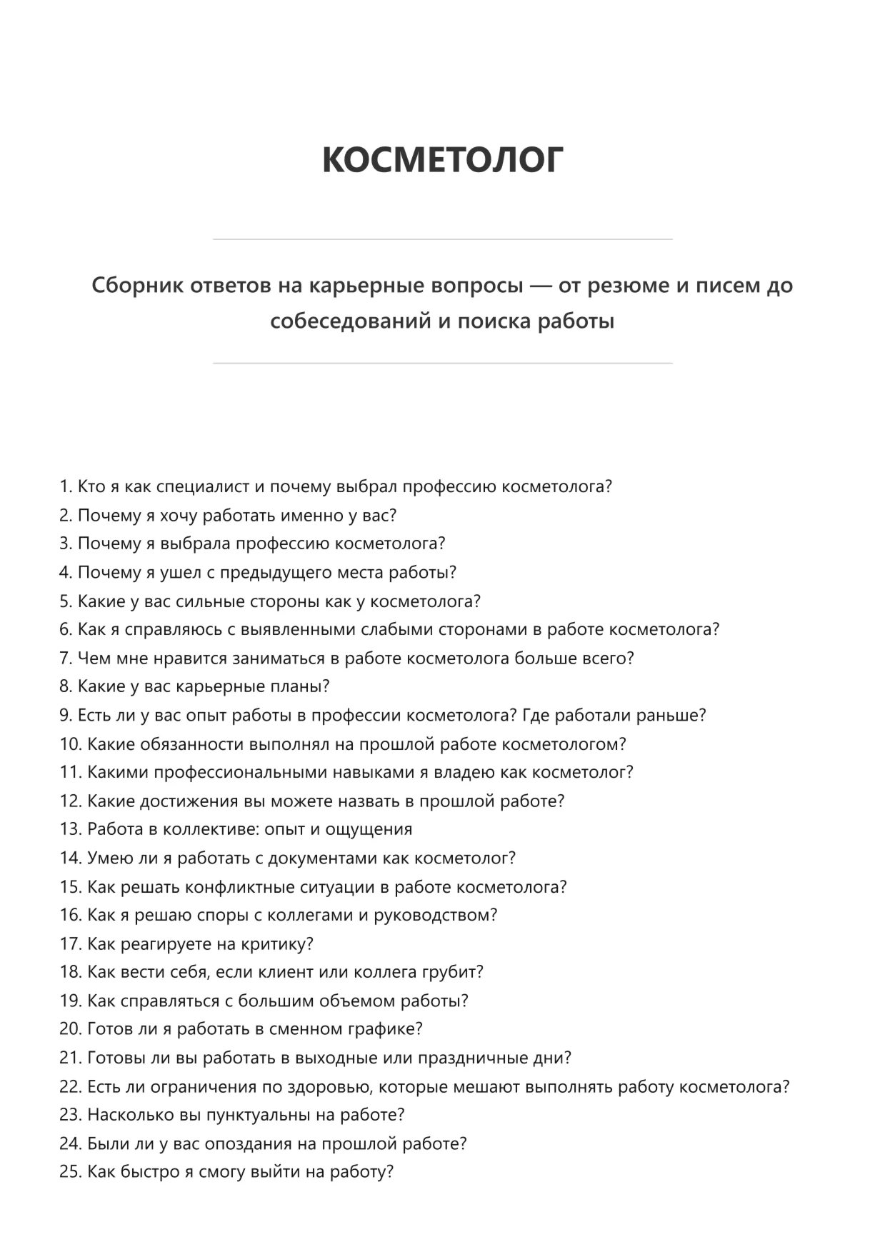 Косметолог. Подготовка к собеседованию. Как пройти собеседование на позицию специалиста. Вопросы и ответы на собеседовании.