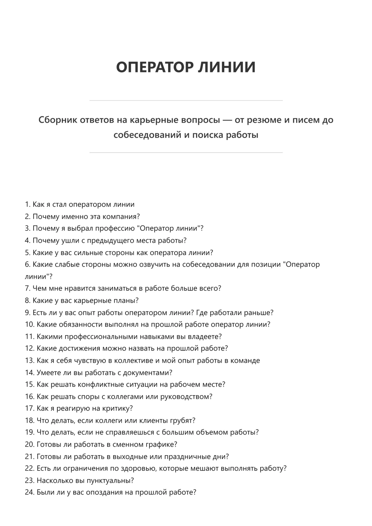 Оператор линии. Подготовка к собеседованию. Как пройти собеседование на позицию специалиста. Вопросы и ответы на собеседовании.