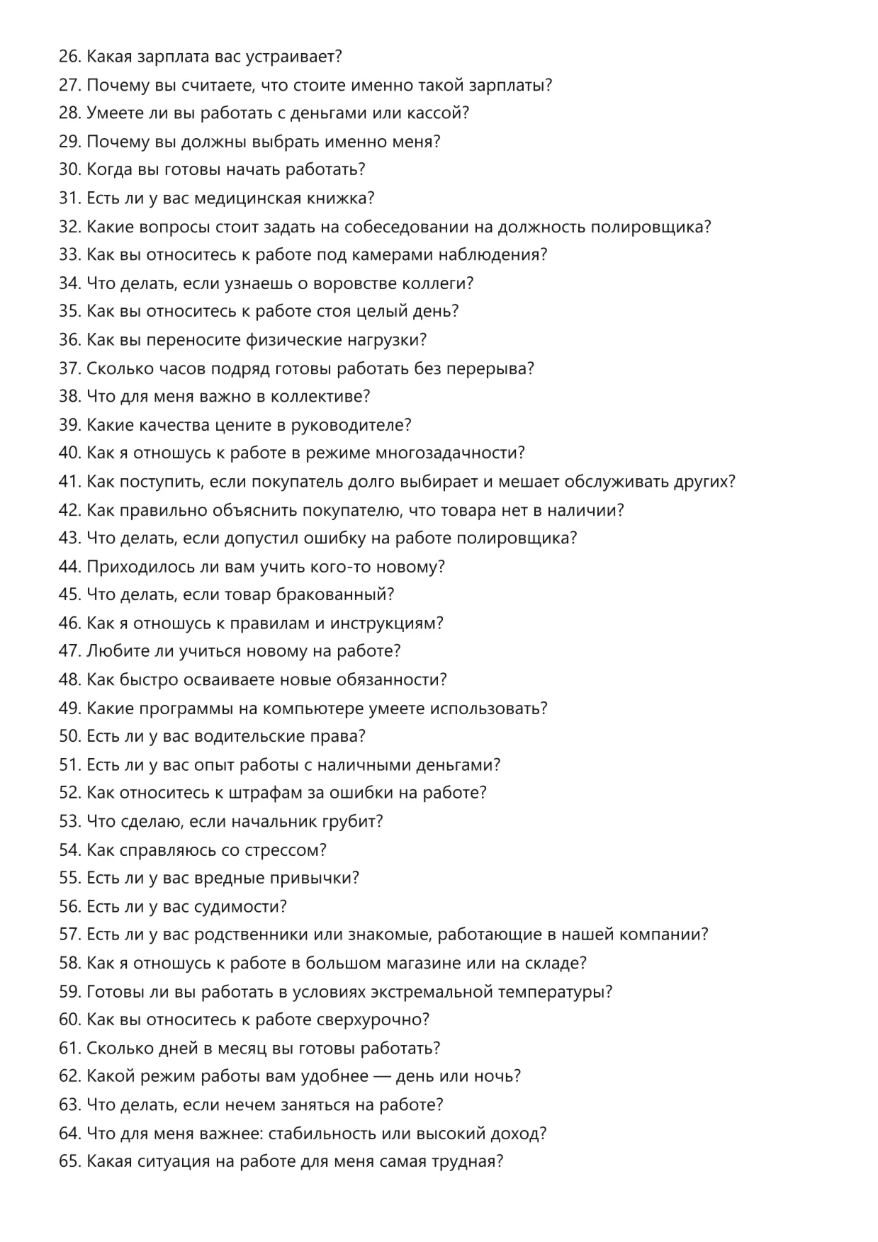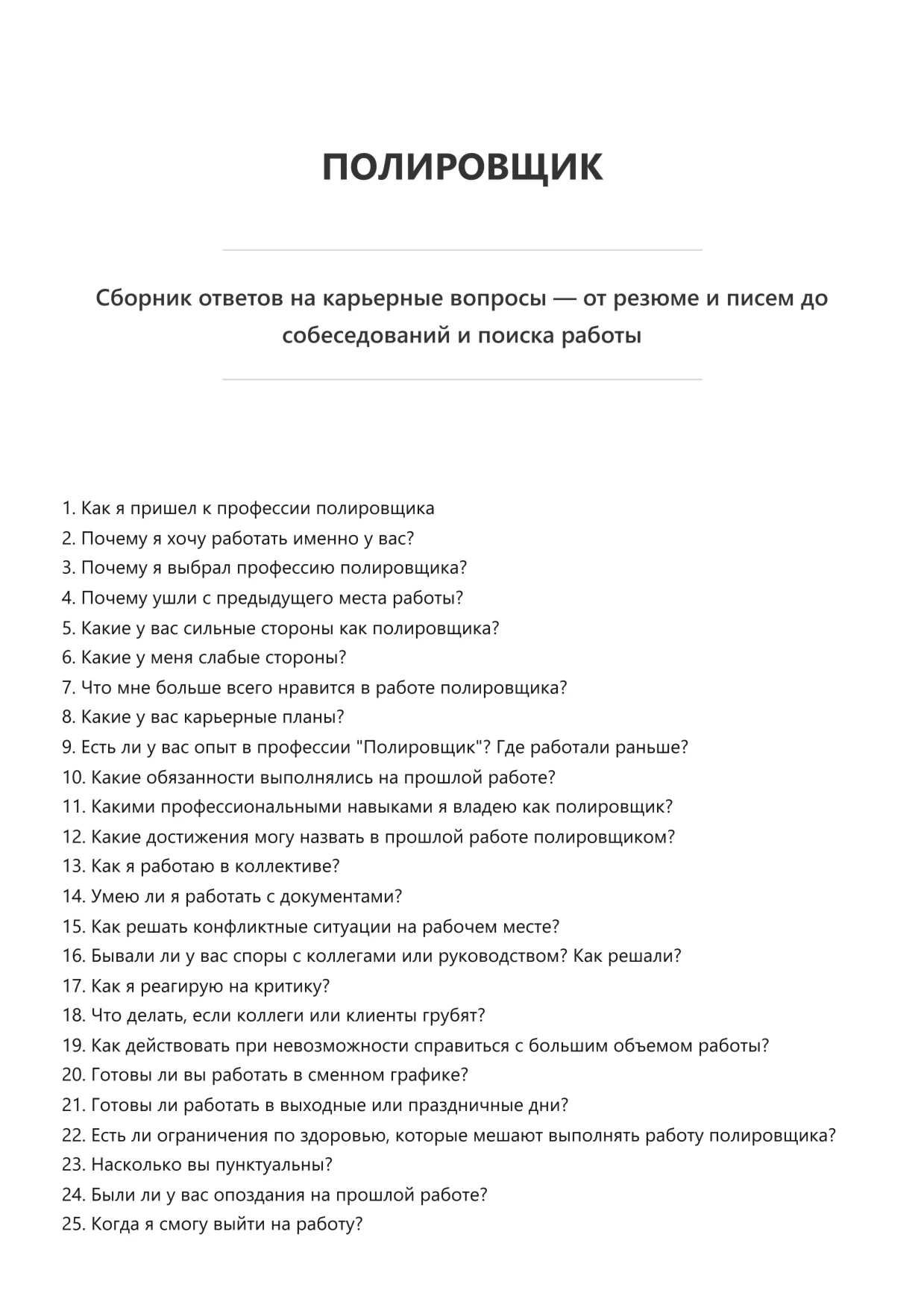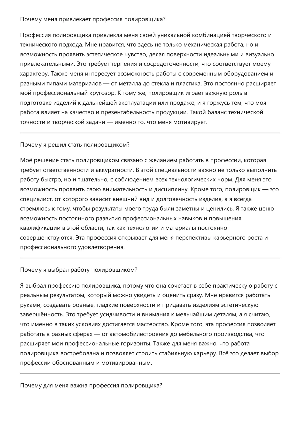 Полировщик. Подготовка к собеседованию. Как пройти собеседование на позицию специалиста. Вопросы и ответы на собеседовании.