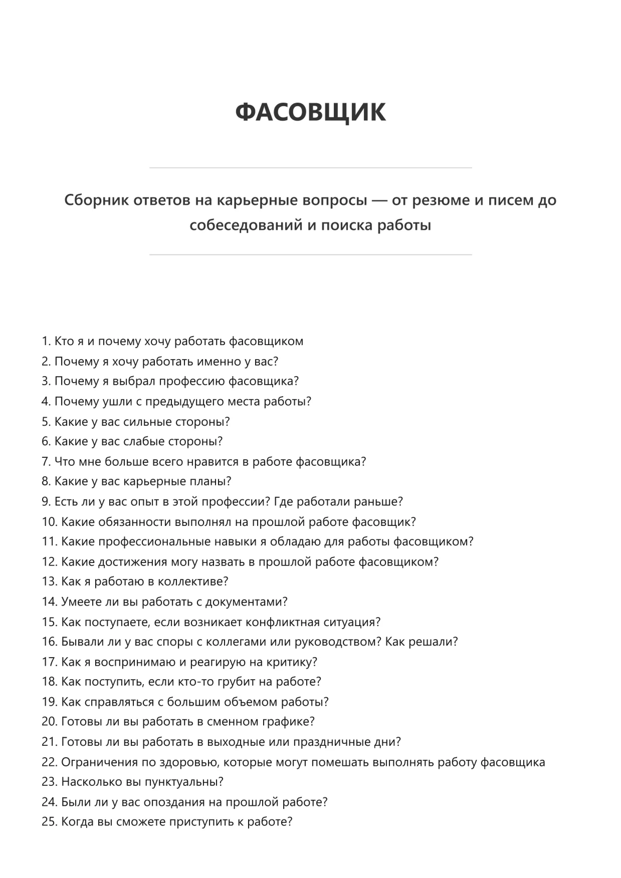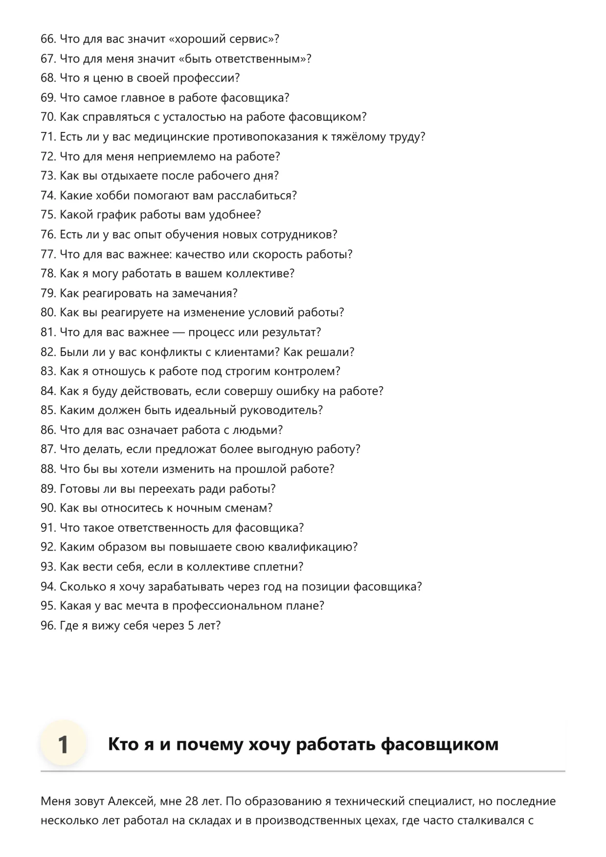 Эта электронная книга представляет собой сборник вопросов и ответов, которые часто возникают у соискателей на разных этапах поиска работы. В ней собран практический опыт и советы, которые помогут быстрее разобраться в нюансах трудоустройства и уверенно действовать в любых ситуациях.