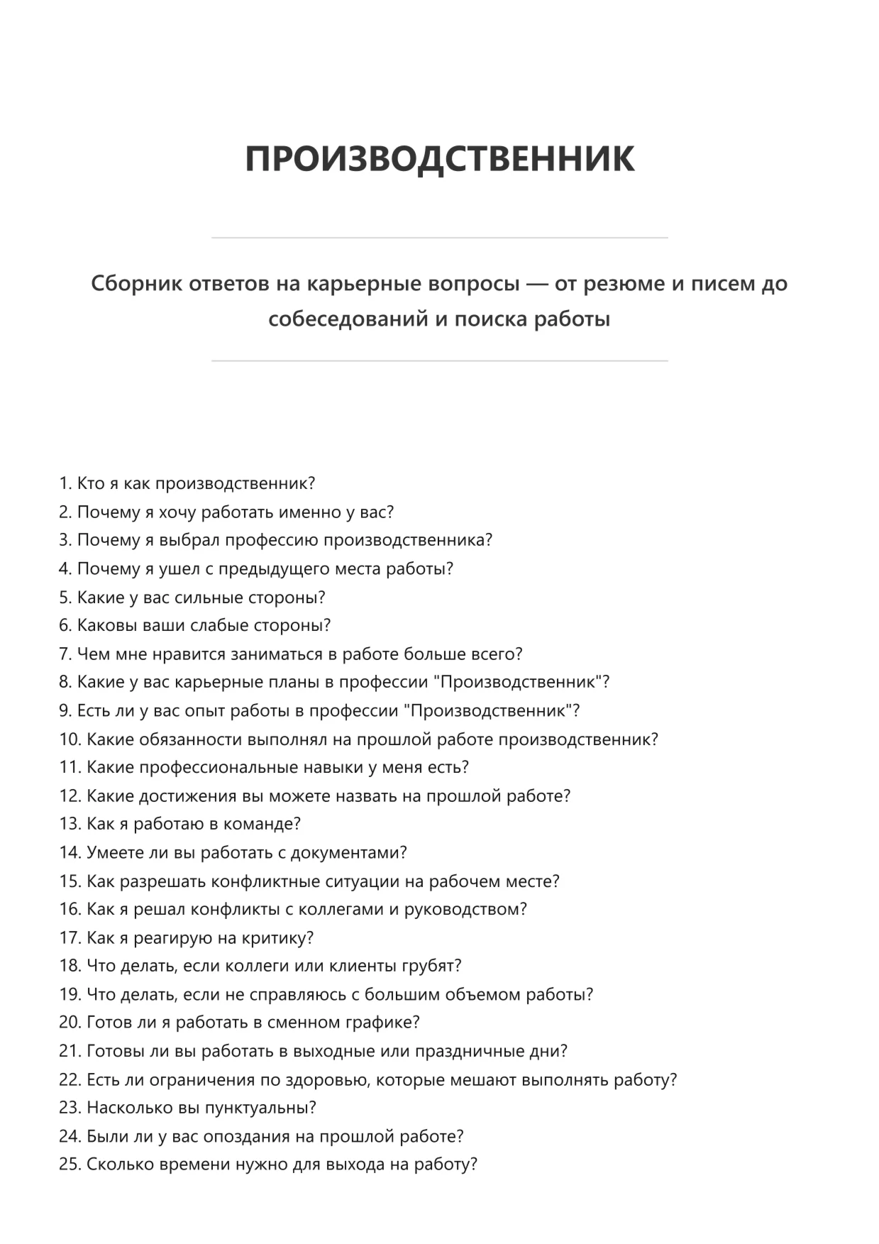 Производственник. Подготовка к собеседованию. Как пройти собеседование на позицию специалиста. Вопросы и ответы на собеседовании.