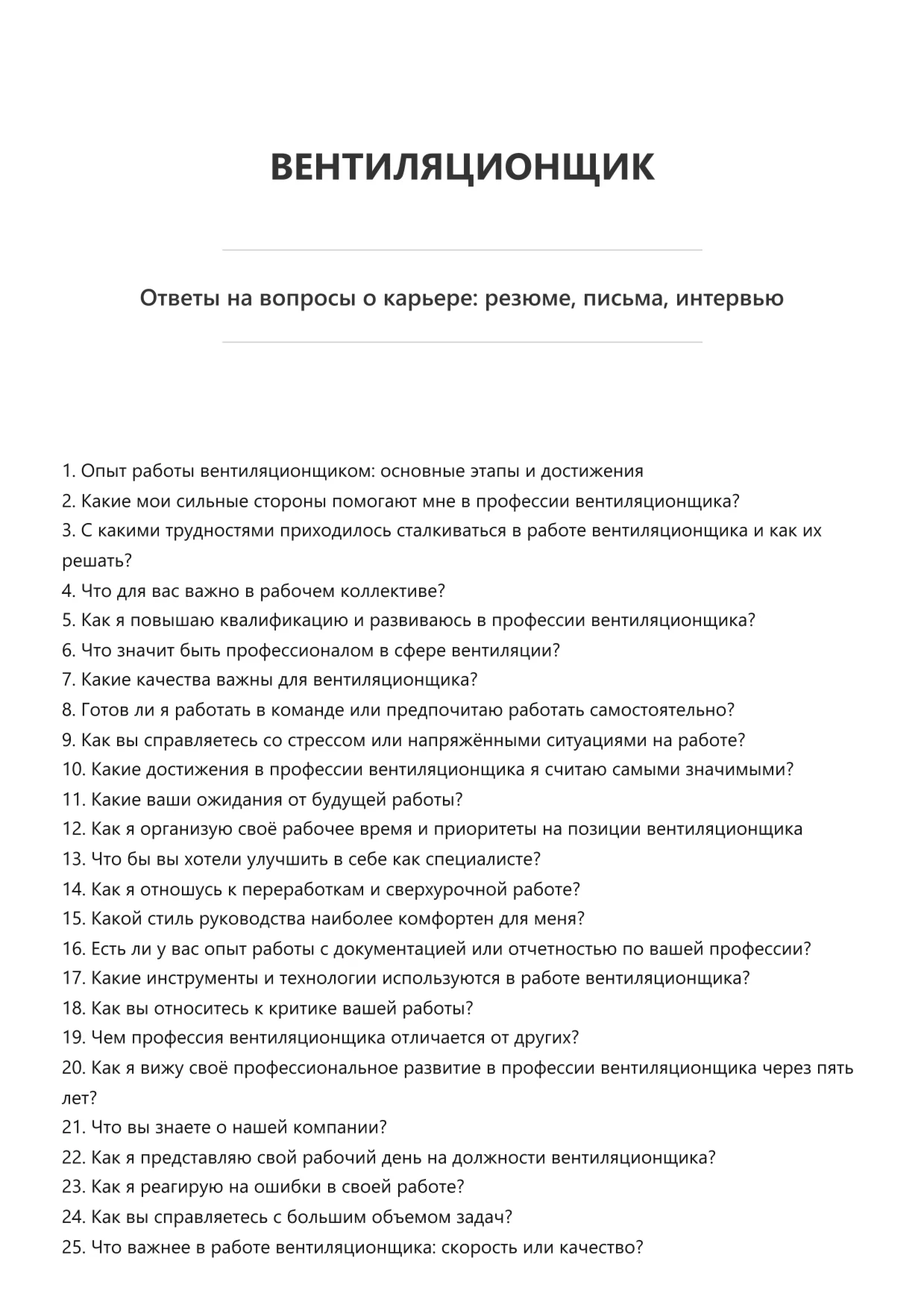 Вентиляционщик. Подготовка к собеседованию. Как пройти собеседование на позицию специалиста. Вопросы и ответы на собеседовании.