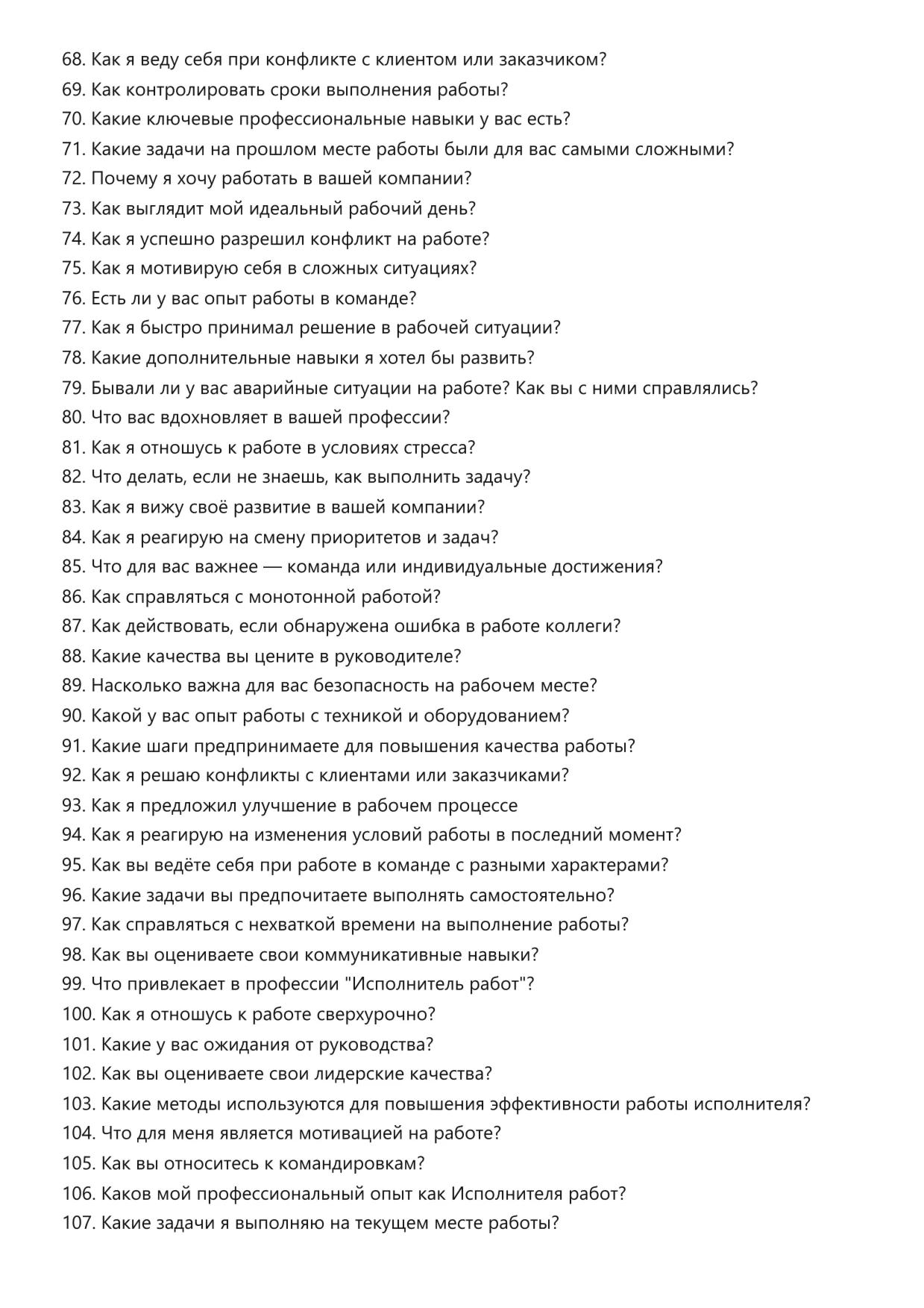 Исполнитель работ. Подготовка к собеседованию. Как пройти собеседование на позицию специалиста. Вопросы и ответы на собеседовании.