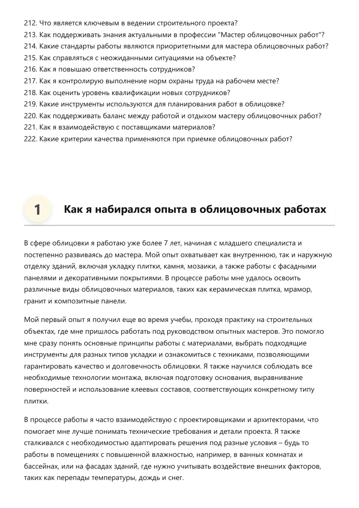 Мастер облицовочных работ. Подготовка к собеседованию. Как пройти собеседование на позицию специалиста. Вопросы и ответы на собеседовании.