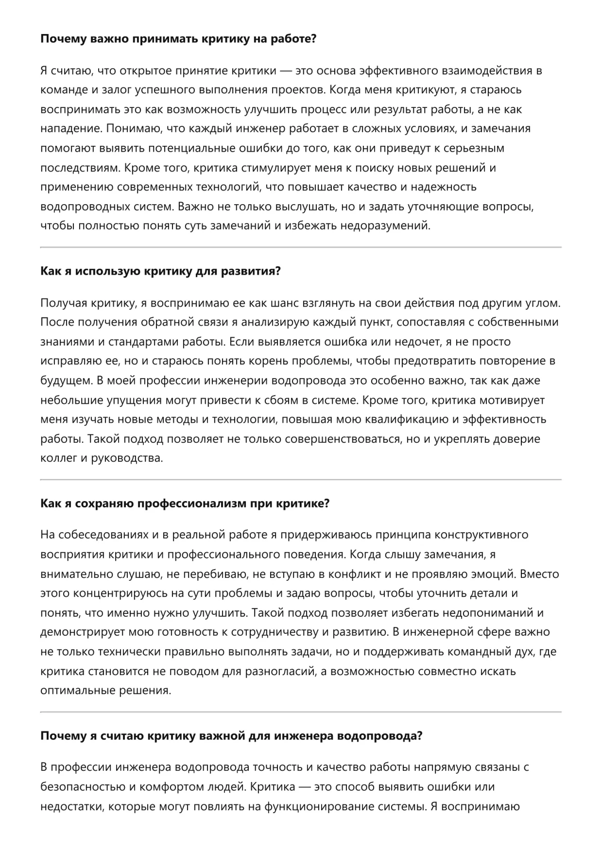Инженер водопровода. Подготовка к собеседованию. Как пройти собеседование на позицию специалиста. Вопросы и ответы на собеседовании.