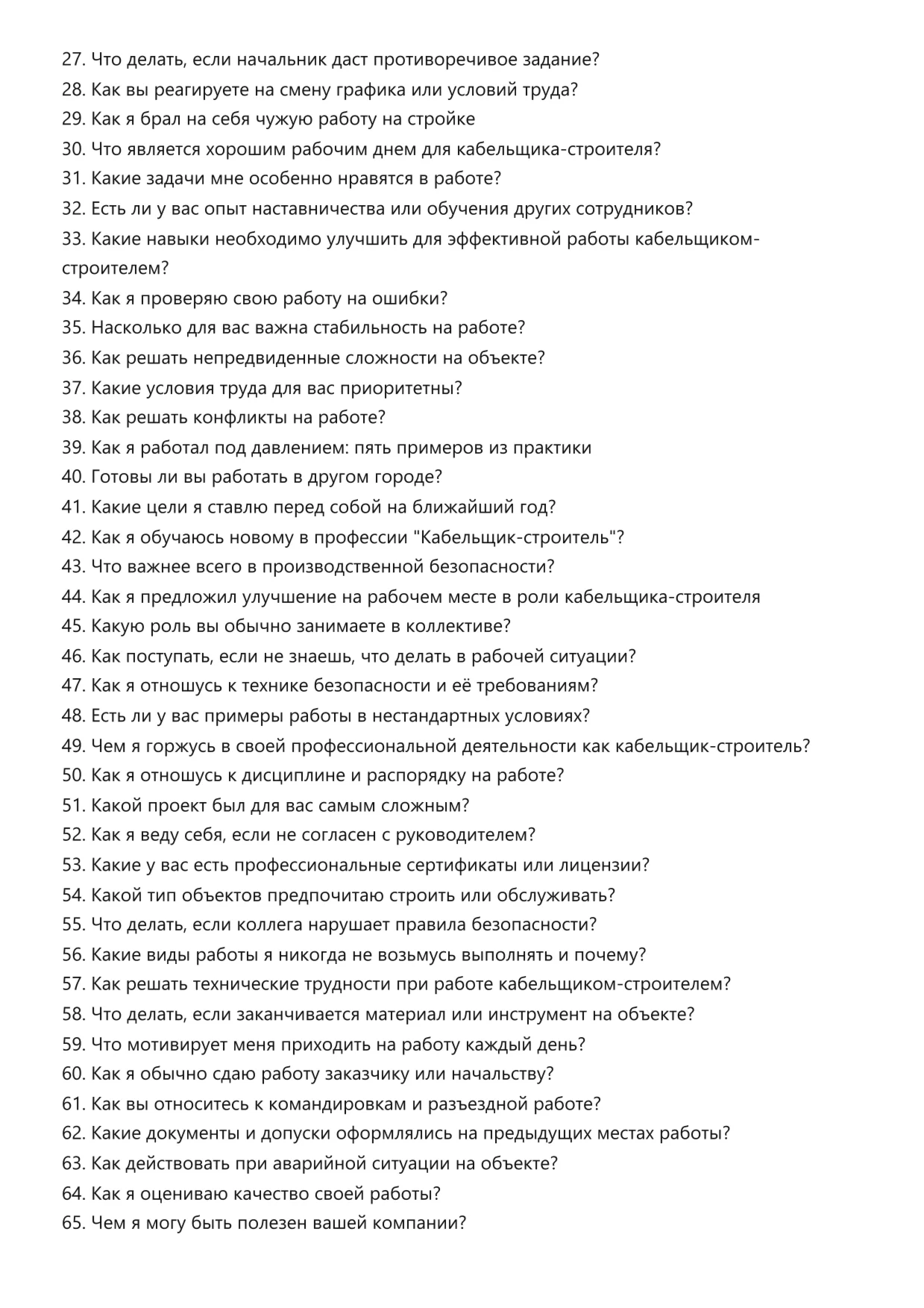 Кабельщик-строитель. Подготовка к собеседованию. Как пройти собеседование на позицию специалиста. Вопросы и ответы на собеседовании.