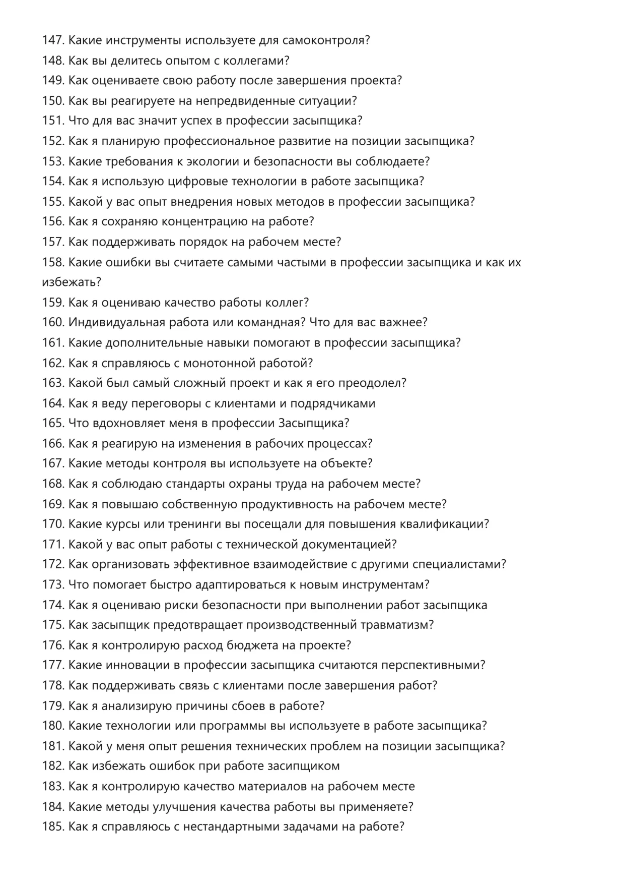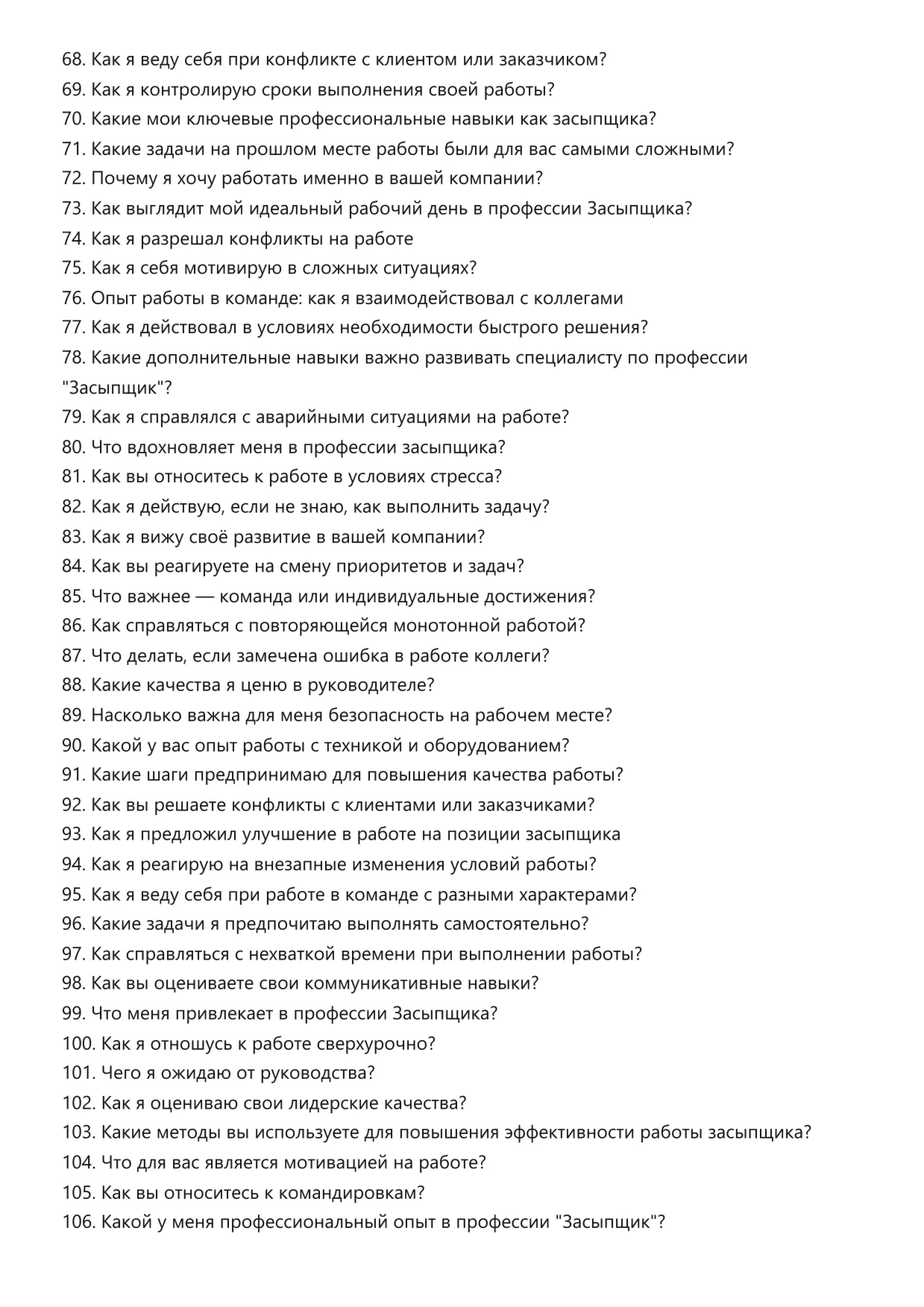 Засыпщик. Подготовка к собеседованию. Как пройти собеседование на позицию специалиста. Вопросы и ответы на собеседовании.