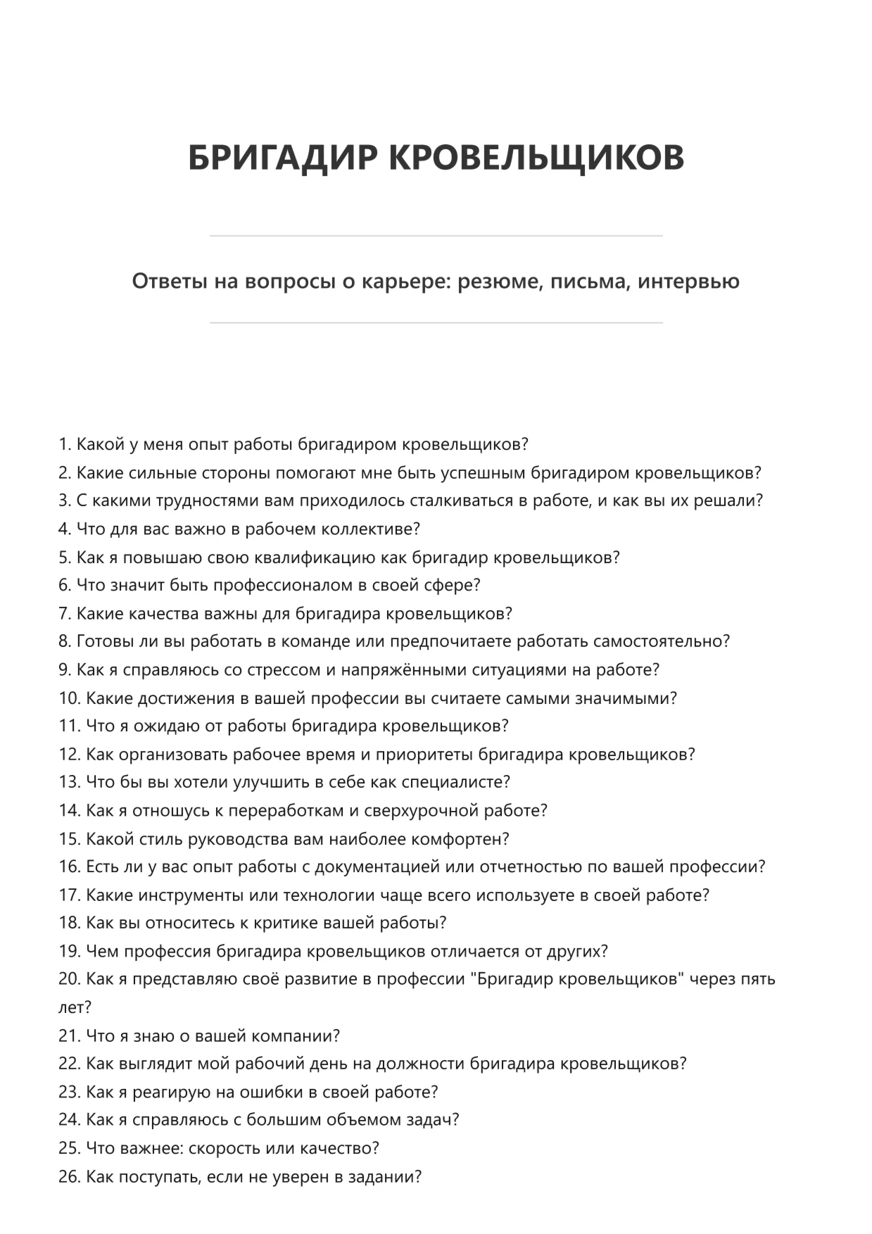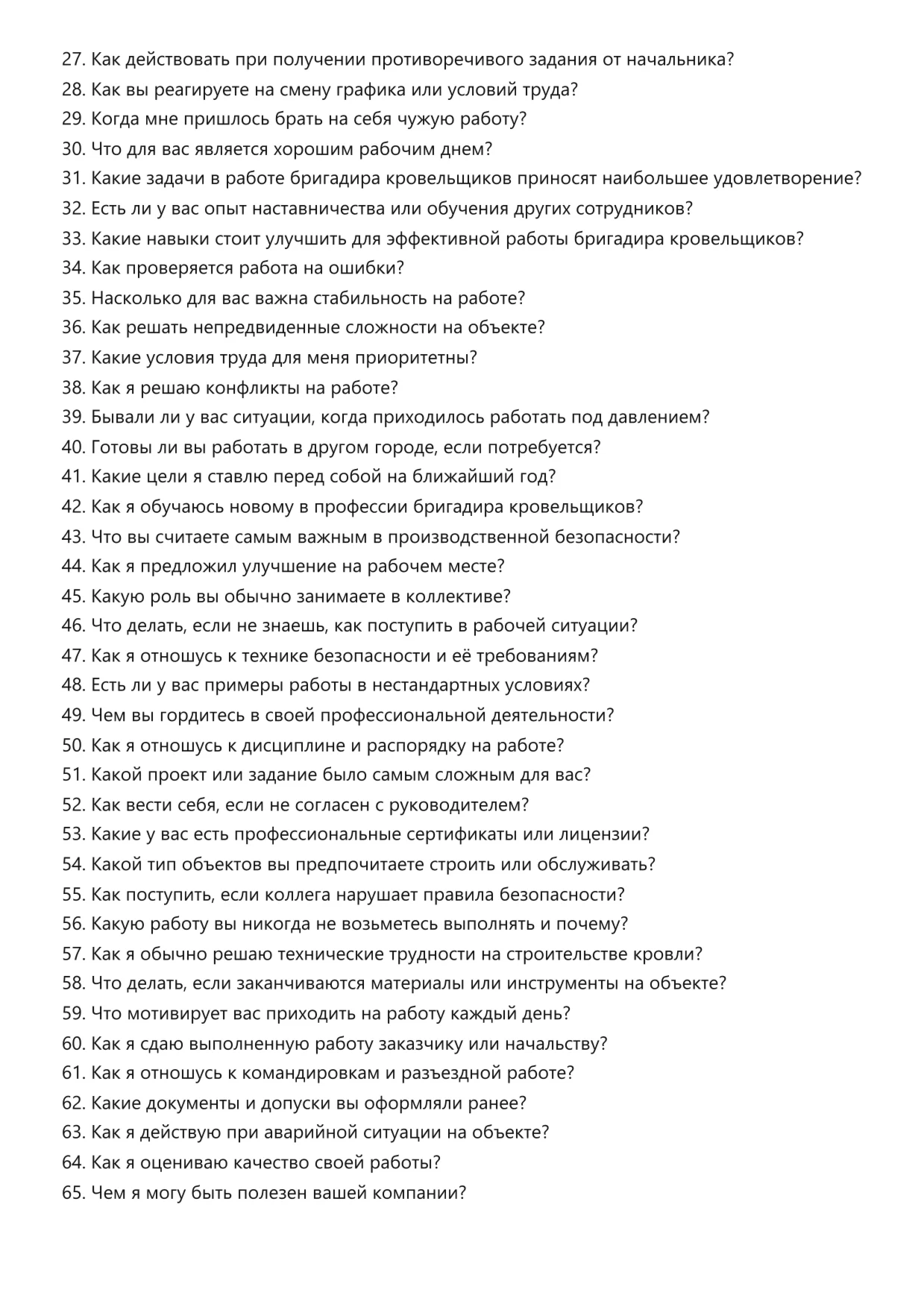 Бригадир кровельщиков. Подготовка к собеседованию. Как пройти собеседование на позицию специалиста. Вопросы и ответы на собеседовании.
