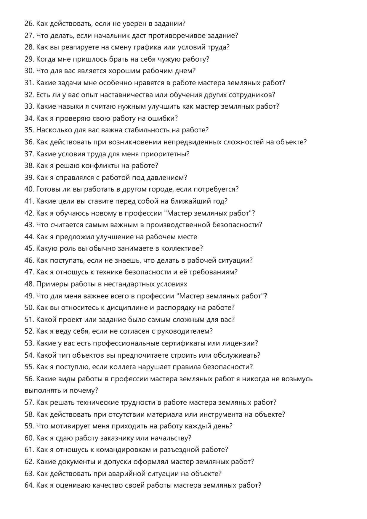Мастер земляных работ. Подготовка к собеседованию. Как пройти собеседование на позицию специалиста. Вопросы и ответы на собеседовании.