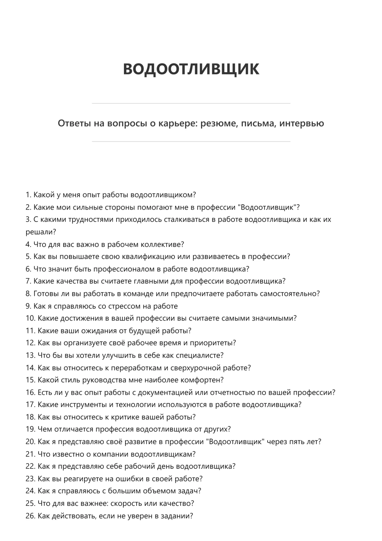 Эта электронная книга представляет собой сборник вопросов и ответов, которые часто возникают у соискателей на разных этапах поиска работы. В ней собран практический опыт и советы, которые помогут быстрее разобраться в нюансах трудоустройства и уверенно действовать в любых ситуациях.