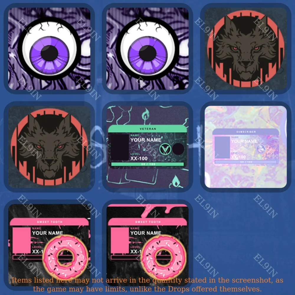◆ Обратите внимание, что это учетная запись Twitch с предметами, которые вы можете получить, привязав свой игровой аккаунт.