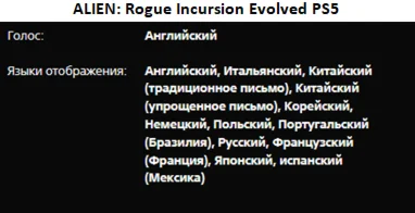2. Доступные платформа: ТОЛЬКО PS5 - Alien Rogue Incursion.
