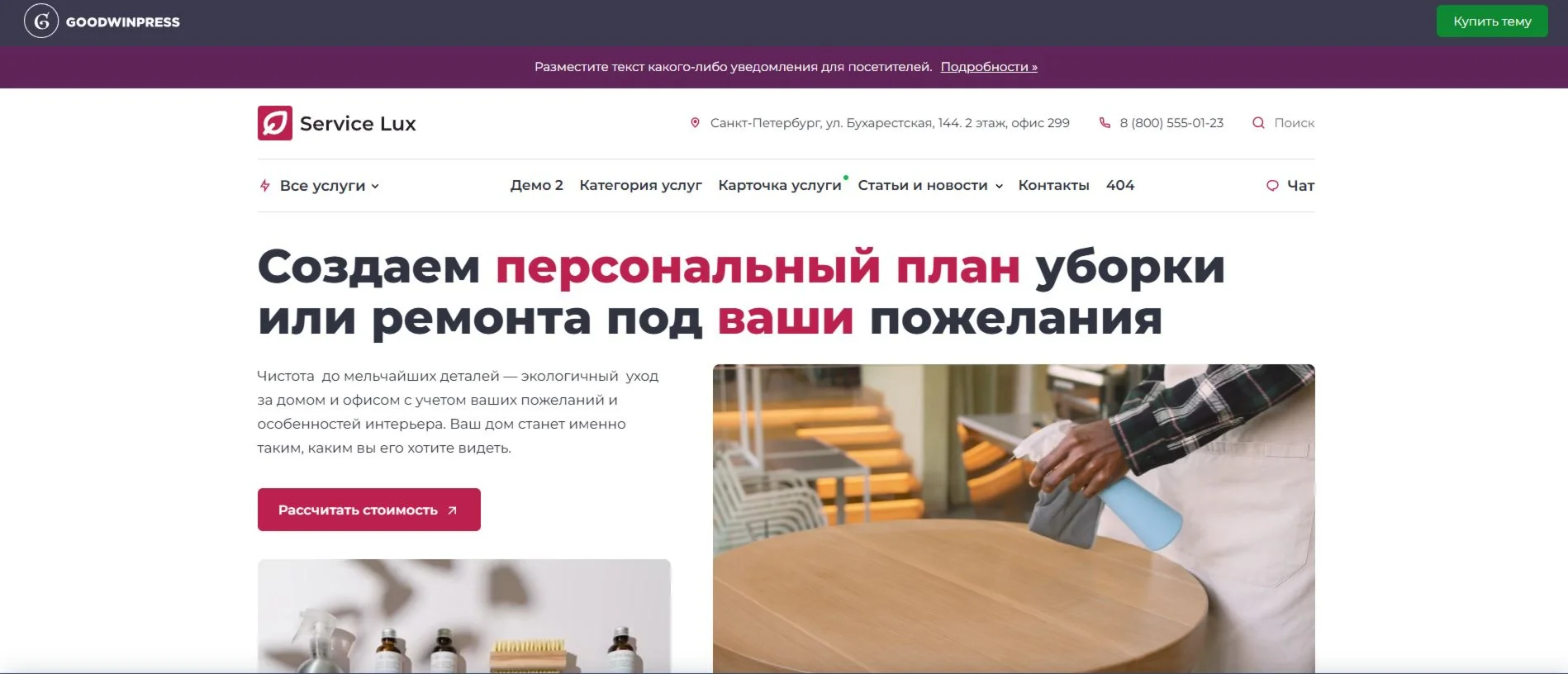 Создайте сайт для вашего бизнеса за считанные минуты с темой Service Lux от GoodwinPress!
