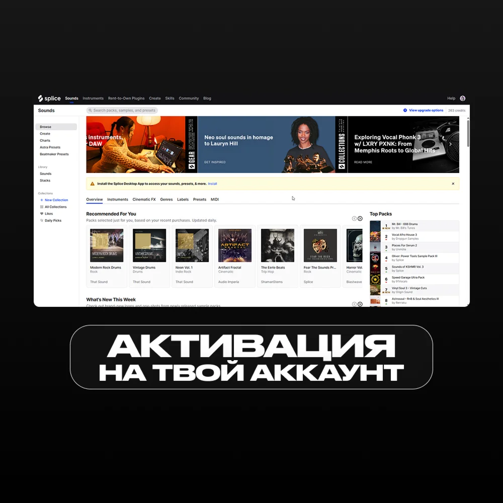 - Ваш уникальный код (выдаётся сразу после покупки) - Почту, где ранее не был зарегистрирован Splice-аккаунт ИЛИ данные в формате почта:пароль от зарегистрированного аккаунта.