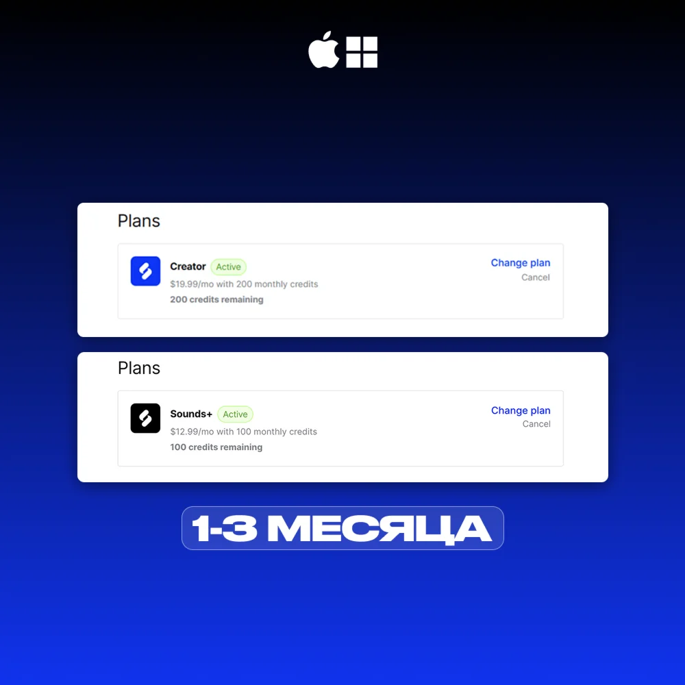 ▪️Sounds+ — безлимитная библиотека сэмплов, кредиты на загрузку, интеграция с DAW. ▪️Creator — всё из Sounds+ + дополнительно плагин Beatmaker, синтезаторы и Drum Machine.