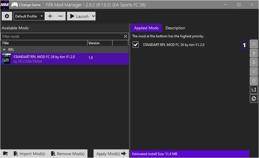 STANDART РПЛ MOD EA FC 26 by tim v1.0 TU 1.2.1
