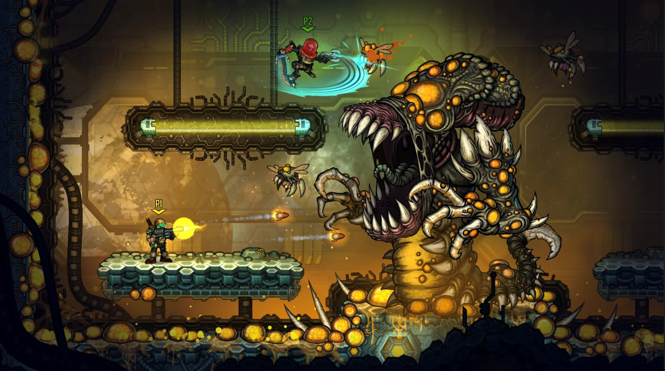Fury Unleashed — экшен-платформер в жанре roguelite с комбо. Каждое убийство увеличивает ваше комбо. Достигните определенных пределов, и ваша устойчивость к урону и способности к исцелению активируются! Это игра, которую можно закончить одним единственным комбо. Хватит ли у вас сил? О FURY UNLEASHED Fury Unleashed была создана путем объединения вдохновения от современных платформеров в жанре roguelite (таких как Dead Cells и Rogue Legacy) с ностальгическими воспоминаниями о платформерах старой школы (таких как Contra и Metal Slug). Мы совершенствовали наше творение в течение пяти лет, чтобы гарантировать, что ваш опыт игры будет таким же запоминающимся, как и от вышеупомянутых игр. Мы искренне верим, что вы не будете разочарованы. КЛЮЧЕВЫЕ ОСОБЕННОСТИ • Постоянно меняющийся комикс: исследуйте страницы живого комикса, где чернила — ваш самый ценный ресурс, а каждая комната — это панель. Узнайте, почему Джон Ковальски, создатель знаменитой серии Fury Unleashed, испытывает творческий кризис, и постарайтесь ему помочь. • Система комбо с эффектом: убивайте врагов достаточно быстро, чтобы высвободить свою ярость и уничтожить все на своем пути, не получив урона. Освойте технику и пройдите всю игру одним эпическим комбо! • Возможности настройки игрового процесса: выберите сложный режим Hard (который проверит ваши навыки) или легкий режим (где вы можете настроить настройки сложности по своему вкусу). Пройдите игру на сложном режиме, чтобы открыть невероятный и легендарный режимы. Отключите кровь, если она вам не нравится, или если рядом дети. Играйте в одиночку или с другом в локальном кооперативе. • Выбирайте способности своего героя в соответствии со своим стилем игры и настраивайте его внешний вид по своему вкусу! • Роговый рогалик с частичной перманентной смертью: исследуйте миры, созданные путем сочетания созданных вручную уровней и сгенерированных процессом алгоритмов. Выбирайте лучшие предметы, которые помогут вам в прохождении, и разблокируйте постоянные улучшения, когда вы умираете, для будущих прохождений. • Вдохновляющее окружение: играйте на визуально уникальных страницах комиксов и погрузитесь в альбом создателя. Освойте модели поведения каждого врага, чтобы победить в общей сложности 40 боссов. Всё это сопровождается эпическим саундтреком, написанным Адамом Скорупой и Кшиштофом Вежинкевичем, авторами музыки для «Ведьмака», Bulle