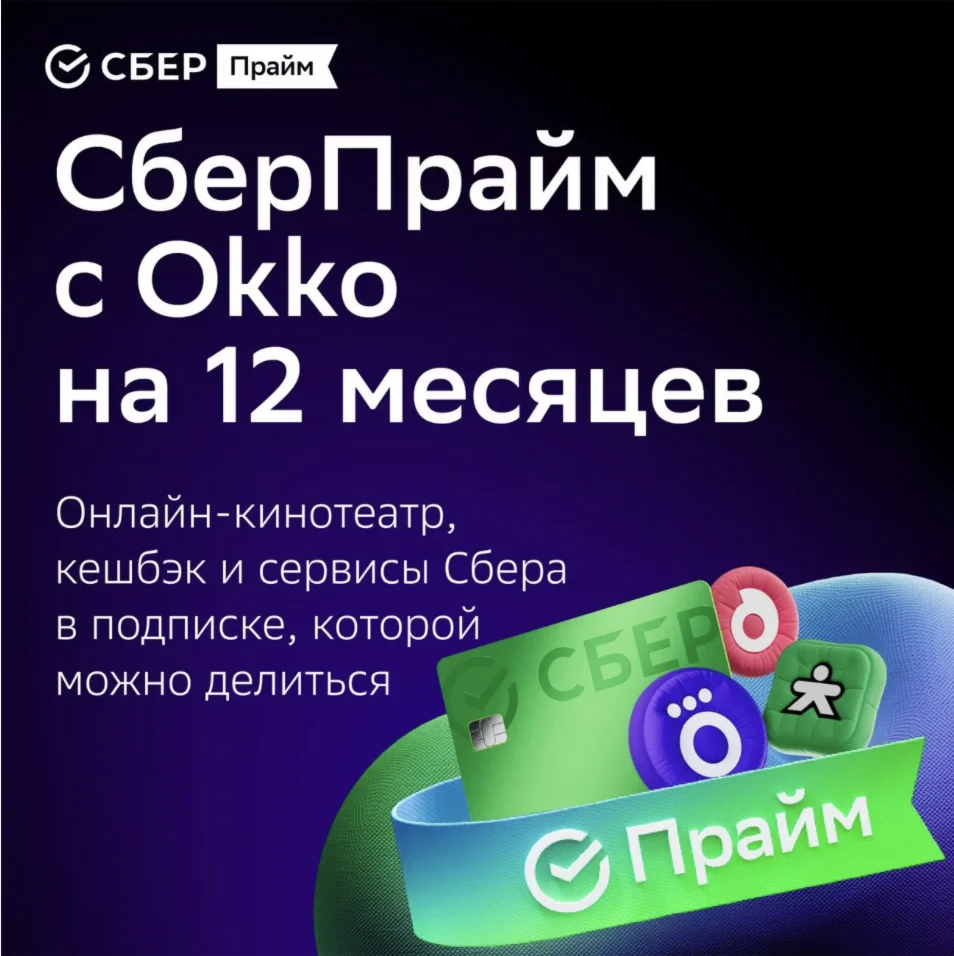 СберПрайм и Онлайн-кинотеатр 12 месяцев промокод
