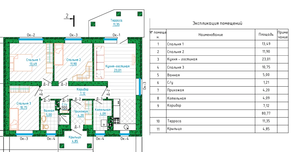 Проект дома 80м2. , 12.5 на 9 метров. Комфортный для жизни одноэтажный дом, подходит для постоянного проживания семьи из 3-4 человек. Стены выполнены из газобетона D500-400мм. Снаружи можно применить облицовочный кирпич как в проекте или фасадную штукатурку. Дом строится достаточно быстро не требует высокой квалификации, нужно просто брать и делать. Главное решится и все получится! Нет ничего сложного!