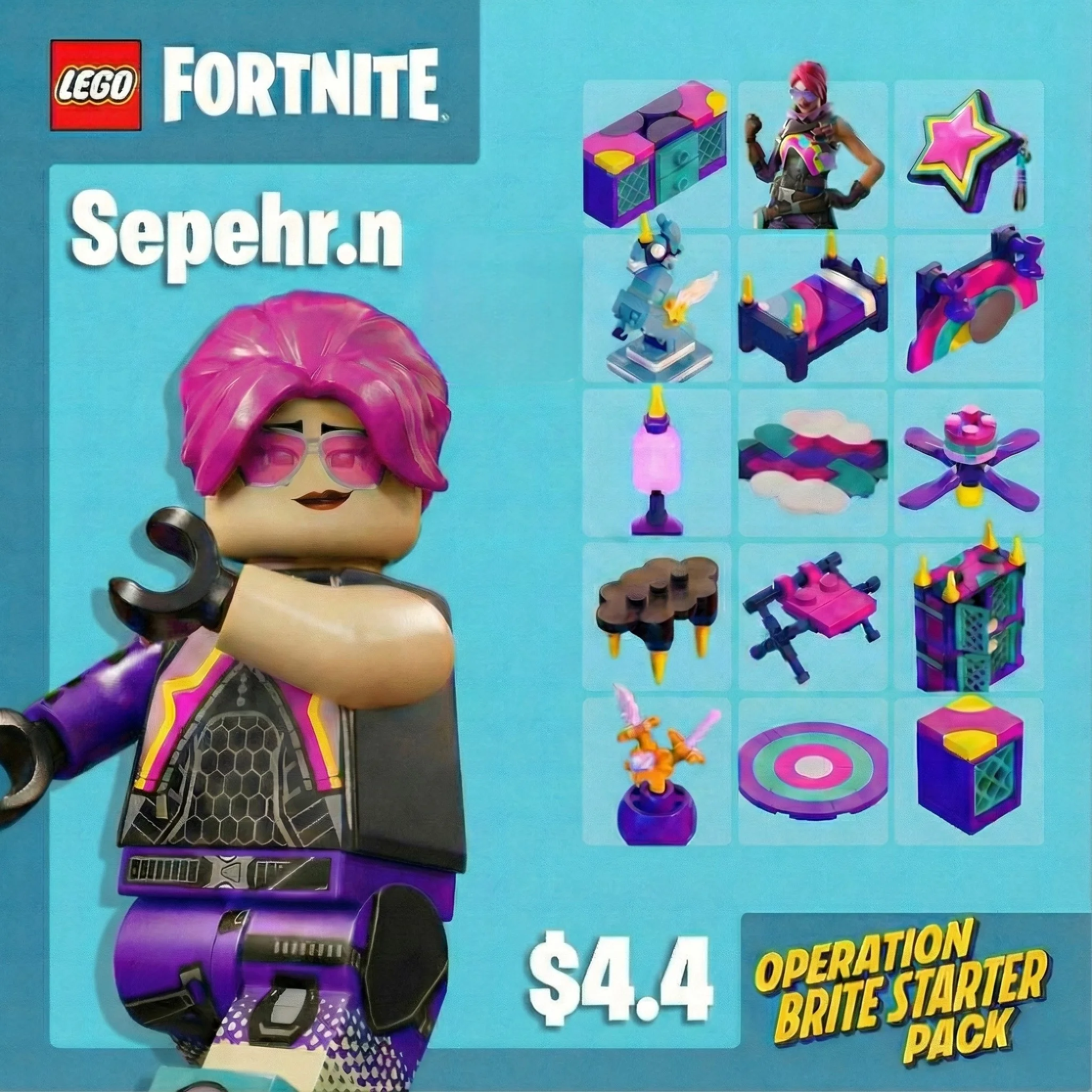 Купив этот товар, вы получите стартовый набор Operation Brite, активированный непосредственно в вашей учётной записи Fortnite. Этот набор включает в себя комплект экипировки, украшения на спину и декора (с 13 предметами декора для использования в LEGO® Fortnite).